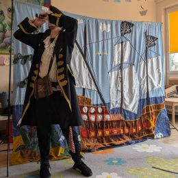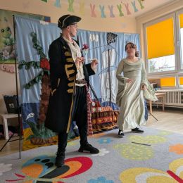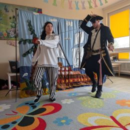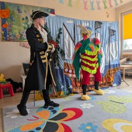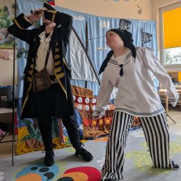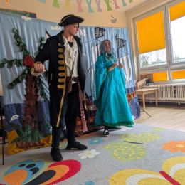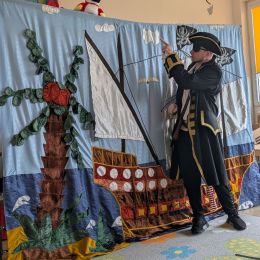 1 kwietnia nasze przedszkole odwiedzili aktorzy z krakowskiego Teatrzyku Skrzat, którzy zaprezentowali dzieciom pełne przygód przedstawienie pt. „Wyspa skarbów”. Spektakl przeniósł najmłodszych w niezwykły świat pirackich wypraw, tajemniczych postaci i ważnych wartości.