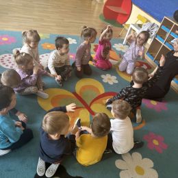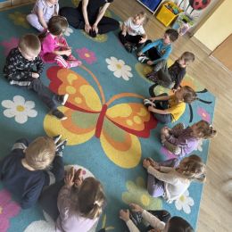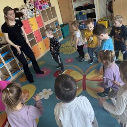 W naszej grupie odbyły się kolejne ciekawe zajęcia taneczno-ruchowe. Spotkanie przebiegło w radosnej i pełnej energii atmosferze. Dzieci chętnie uczestniczyły w zabawach przy muzyce, ćwicząc koordynację ruchową oraz poczucie rytmu. Przedszkolaki uczyły się prostych kroków tanecznych i krótkich układów, które wykonywały z dużym zaangażowaniem i uśmiechem. Zajęcia były świetną okazją do wspólnej zabawy, rozwijania wyobraźni ruchowej oraz wzmacniania wiary we własne możliwości.
