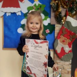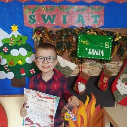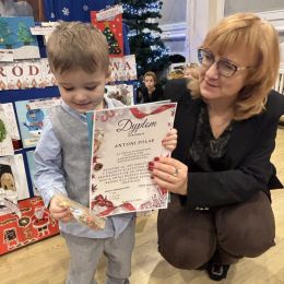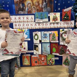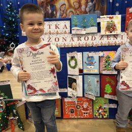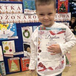 W naszej placówce odbyło się uroczyste rozstrzygnięcie wewnątrzprzedszkolnego konkursu plastycznego pt. „Najpiękniejsza kartka Bożonarodzeniowa”. Konkurs cieszył się dużym zainteresowaniem, a dzieci wykazały się ogromną kreatywnością, pomysłowością oraz starannością w wykonaniu prac. Z naszej grupy w konkursie udział wzięli Alicja, Antoni, Radosław oraz Kajetan, którzy z zaangażowaniem przygotowali piękne, świąteczne kartki. Wszystkim uczestnikom serdecznie gratulujemy i dziękujemy za włożony wysiłek oraz artystyczne podejście do tematu. Takie inicjatywy nie tylko rozwijają zdolności plastyczne dzieci, ale także wprowadzają wszystkich w wyjątkowy, świąteczny nastrój.