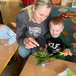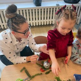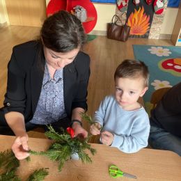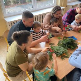 Nie zabrakło także świątecznej twórczości – dzieci wraz z rodzicami wykonały świąteczne bombki, a spotkanie zakończyło się wspólnym kolędowaniem przy „Przybieżeli do Betlejem Pasterze” oraz składaniem życzeń.