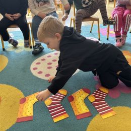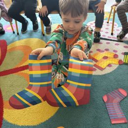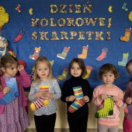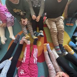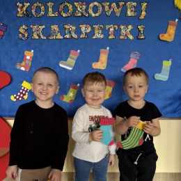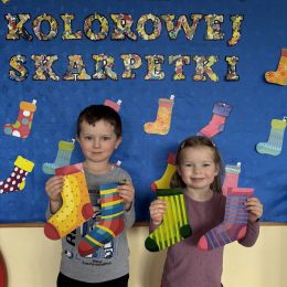 Dziś w naszym przedszkolu obchodziliśmy Dzień Kolorowej Skarpetki. Z tej okazji każde dziecko założyło dwie różne, kolorowe skarpetki na znak akceptacji i solidarności. Poznaliśmy również historię tego święta oraz dowiedzieliśmy się, że jest to dzień poświęcony osobom z zespołem Downa, który przypomina o szacunku, zrozumieniu i akceptacji dla wszystkich ludzi. Podczas zajęć czekało na nas wiele radosnych aktywności. Układaliśmy puzzle, bawiliśmy się w różnorodne gry ruchowe, tańczyliśmy przy wesołej muzyce oraz uczestniczyliśmy w zabawach integracyjnych. Nie zabrakło również kreatywnych zajęć plastycznych, podczas których dzieci mogły ozdabiać skarpetki według własnych pomysłów. Wzięliśmy udział w akcji „Wyjątkowa Skarpetka 2026”, która podkreśla, jak ważna jest akceptacja i szacunek dla każdego człowieka. To był dzień pełen uśmiechu, dobrej zabawy i ważnych rozmów o tym, jak piękna jest różnorodność.