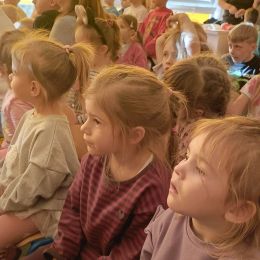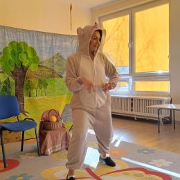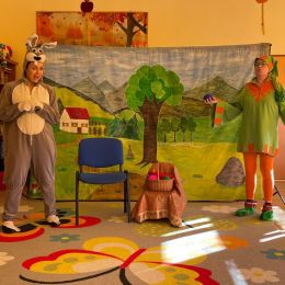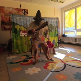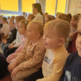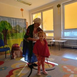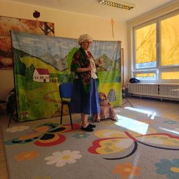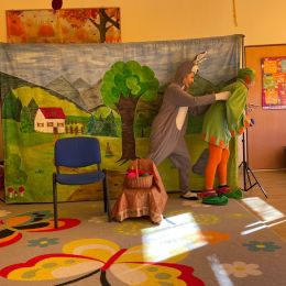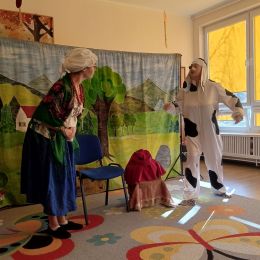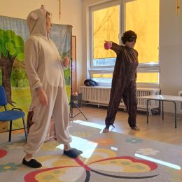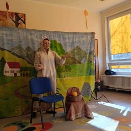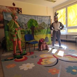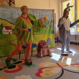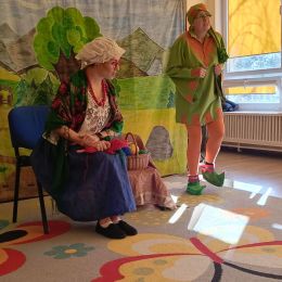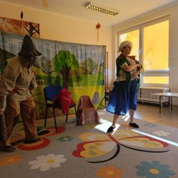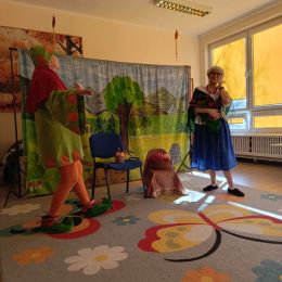 W naszym przedszkolu 19 listopada odbyło się przedstawienie pt. "O krasnalu, babci i kolorowych kulkach" zaprezentowany przez aktorów z teatru "Skrzat". Poznaliśmy w nim krasnala, który martwił się nadchodzącą jesienią, gdyż nie miał ciepłego ubranka. Na szczęście w bajce była babcia Danuta, która zrobiła mu sweterek na drutach. Bajka była zabawna i pełna humoru, a dobrą zabawę zapewniły m.in. wesołe postaci wspomnianej już babci Danuty i krasnala oraz kota psotnika, zajączka i myszki. Dzieci aktywnie uczestniczyły w prezentowanej sztuce, żywo reagowały na pojawiających się nowych bohaterów. Podczas przedstawienia panowała atmosfera pełna radości, śmiechu oraz zabawy z aktorami. Nawet najmłodsze przedszkolaki nie przestraszyły się groźnego rozbójnika Madeja.