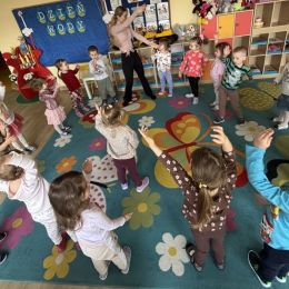 W naszej grupie odbyły się kolejne wyjątkowe warsztaty taneczne, które dostarczyły dzieciom wiele radości i pozytywnej energii. Podczas zajęć przedszkolaki miały okazję poznać podstawowe kroki taneczne, rozwijać poczucie rytmu oraz wyrażać siebie poprzez ruch. Warsztaty prowadzone były w formie zabawy, dzięki czemu każde dziecko mogło czuć się swobodnie i aktywnie uczestniczyć w zajęciach. Nie zabrakło uśmiechów, śmiechu oraz wspólnej integracji. Zajęcia taneczne to nie tylko świetna forma aktywności fizycznej, ale również doskonały sposób na rozwijanie koordynacji ruchowej, wyobraźni oraz pewności siebie. Cieszymy się, że mogliśmy wspólnie przeżyć tak radosne chwile!