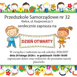 W związku z naborem na rok szkolny 2026/2027 dnia 24 lutego (wtorek) w godzinach 16.00 - 18.00 zapraszamy dzieci oraz rodziców do poznania naszej placówki.