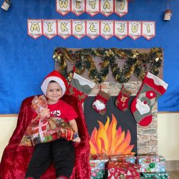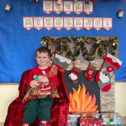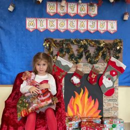 3 grudnia br. nasze przedszkole odwiedził bardzo miły i długo oczekiwany gość. Miał czerwony strój, długą, białą brodę i dźwigał na plecach bardzo ciężki worek, a w nim prezenty. To nie mógł być nikt inny tylko- MIKOŁAJ. Pomimo braku białego puchu, jak co roku przybył na czas. Spotkanie z długo wyczekiwanym gościem przebiegało w bardzo radosnej i przyjaznej atmosferze. Przedszkolaki śpiewały Mikołajowi piosenki. Święty Mikołaj obdarował wszystkie dzieci wspaniałymi paczkami.