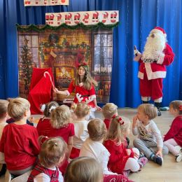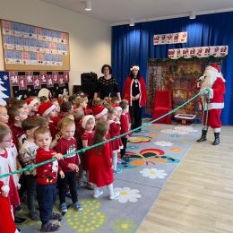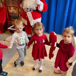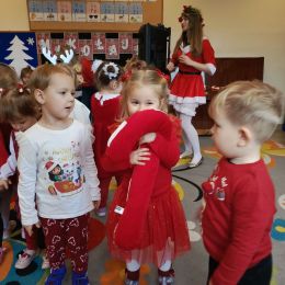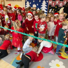 3 grudnia nadszedł długo wyczekiwany moment: w naszym przedszkolu odbyła się zabawa mikołajkowa. Wszystkie dzieci już od samego rana z wielką niecierpliwością spoglądały na drzwi i nasłuchiwały „Mikołajowych” dzwoneczków. Święty Mikołaj nie zawiódł dzieci i nie kazał długo na siebie czekać. Już z samego rana zawitał do naszego Przedszkola, lecz zanim zaczął odwiedzać dzieci w poszczególnych grupach zaprosił wszystkich do udziału w tańcach, konkurencjach i zabawach mikołajkowych.