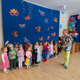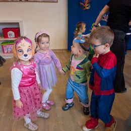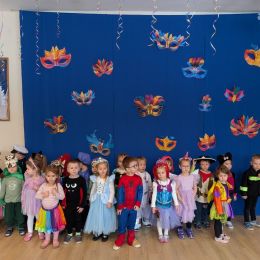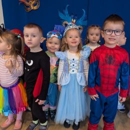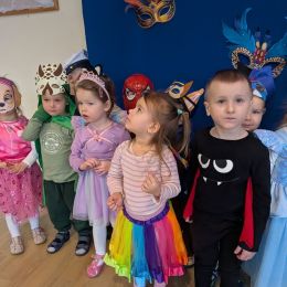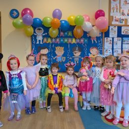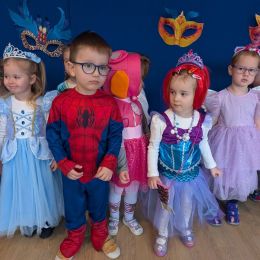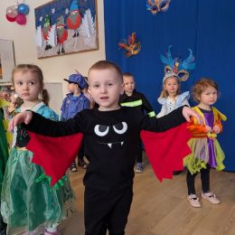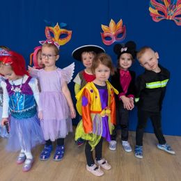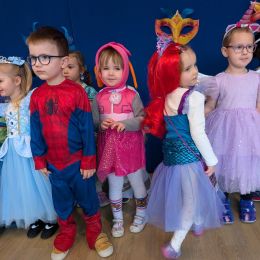 Dzieci z naszego przedszkola również miały okazję wspólnie zintegrować się na balu. Dla przedszkolaków to dzień szczególny, często wyczekiwany przez wiele tygodni. Dzieci tego dnia przebrały się za różne postacie z bajek i nie tylko. Na balu można było spotkać: wróżki, księżniczki, biedronki, rycerzy, policjantów, strażaków, Spider – mana i wiele innych postaci.