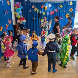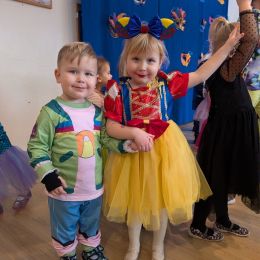 Przedszkolaki świetnie bawiły się w rytm muzyki porywającej do tańca. Bajkowa atmosfera na długo pozostanie w pamięci naszych pociech.