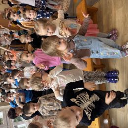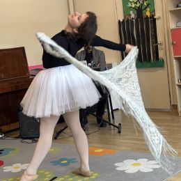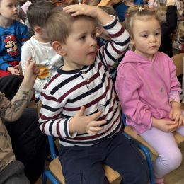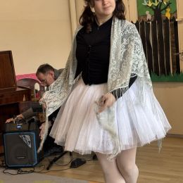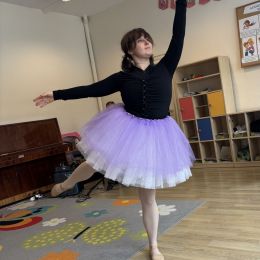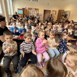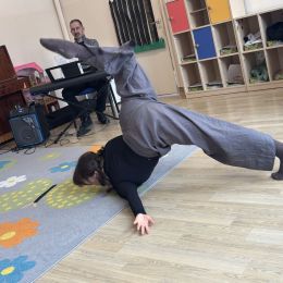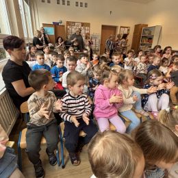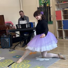 Dziś w naszym przedszkolu mieliśmy przyjemność uczestniczyć w niezwykłym koncercie przygotowanym przez muzyków Filharmonii Świętokrzyskiej. Spotkanie poświęcone było jednemu z najbardziej znanych baletów na świecie – „Jezioro Łabędzie” Piotra Czajkowskiego. Wyjątkowym gościem wydarzenia była balerina, która zaprezentowała dzieciom elementy tańca klasycznego oraz w przystępny sposób opowiedziała historię Odetty i Zygfryda – bohaterów tego baletu. Przedszkolaki z dużym zainteresowaniem słuchały opowieści i rozpoznawały charakterystyczne fragmenty muzyczne „Jeziora Łabędziego”. Spotkanie miało również formę aktywną – pod okiem baleriny dzieci mogły spróbować wykonać proste kroki baletowe, poznając podstawy tego wyjątkowego tańca. Wydarzenie było dla dzieci wartościowym i inspirującym doświadczeniem, łączącym muzykę, taniec oraz edukację artystyczną.
