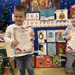 W naszej placówce odbyło się uroczyste rozstrzygnięcie wewnątrzprzedszkolnego konkursu plastycznego pt. „Najpiękniejsza kartka Bożonarodzeniowa”. Konkurs cieszył się dużym zainteresowaniem, a dzieci wykazały się ogromną kreatywnością, pomysłowością oraz starannością w wykonaniu prac. Z naszej grupy w konkursie udział wzięli Alicja, Antoni, Radosław oraz Kajetan, którzy z zaangażowaniem przygotowali piękne, świąteczne kartki. Wszystkim uczestnikom serdecznie gratulujemy i dziękujemy za włożony wysiłek oraz artystyczne podejście do tematu. Takie inicjatywy nie tylko rozwijają zdolności plastyczne dzieci, ale także wprowadzają wszystkich w wyjątkowy, świąteczny nastrój.