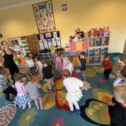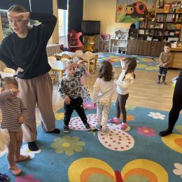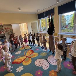 Kiedy przedszkolaki słyszą swoje ulubione przeboje, bez zastanowienia zaczynają podrygiwać, podskakiwać i pląsać. Ruch w rytm muzyki to dla dzieci naturalna rzecz. Nic dziwnego więc, że przedszkolaki tak lubią zajęcia taneczne i chętnie w nich uczestniczą. Dnia 21.10.2025r. na terenie placówki zorganizowaliśmy warsztaty taneczne. Wbrew pozorom, wygibasy na parkiecie to nie tylko świetna zabawa. Okazuje się, że w parze z nimi idzie też cały szereg korzyści dla rozwoju psychoruchowego najmłodszych.