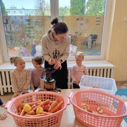 Robienie soku w przedszkolu to doskonały sposób na edukację prozdrowotną poprzez zabawę, podczas której dzieci myją owoce, obserwują pracę sokowirówki i uczą się zasad bezpieczeństwa.